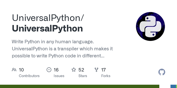 UniversalPython is a transpiler that lets you write Python code in your own language. It translates your code into Python while keeping the syntax familiar.